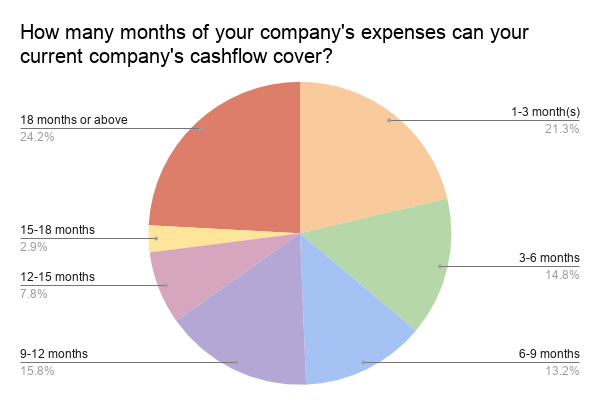 In the survey, more than half of the business owners aren’t managing their cash flow properly, which causes the phenomenon of extremely huge or extremely limited cash flow. 21.3% of the respondents’ cash flows were only able to handle business expenses for 1-3 months, while 24.8% of the respondents’ cash flow could handle those expenses for 18 months. There were only 14.8% of the respondents who could satisfy the standard of a healthy cash flow. Limited cash flow may cause your business to bankrupt anytime, while excessive cash flow implies that cash isn’t fully utilized to develop their businesses.